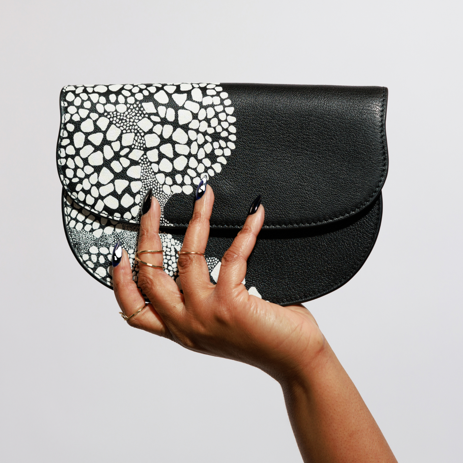 At MOORE by Akila Moore, we transform breathtaking artwork into stunning accessories that redefine what it means to be a functional art piece. Each design begins as a masterpiece that seamlessly flows onto each canvas because true art isn’t just admired—it’s carried, worn, and treasured.